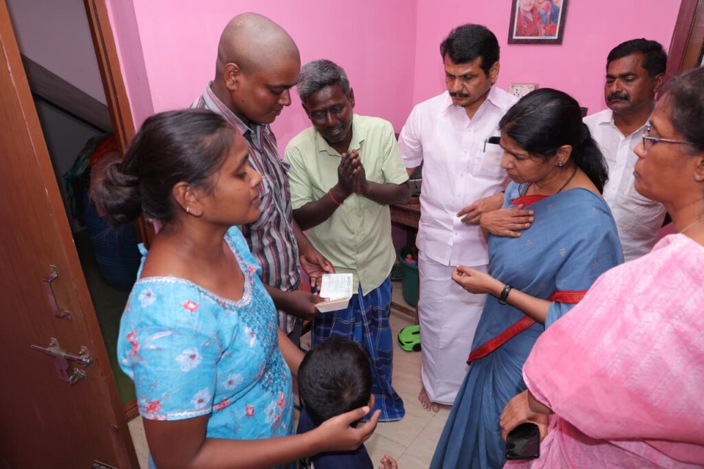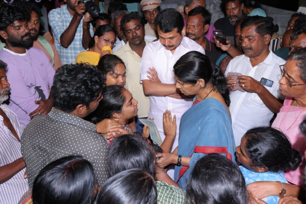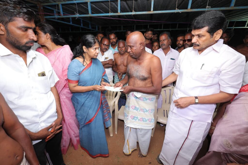 As directed by the Hon’ble Chief Minister of Tamil Nadu, Thalapathy M.K. Stalin, our Party’s Deputy General Secretary and Hon’ble Member of Parliament, Poet Kanimozhi Karunanidhi, personally visited Karur to console the families of those who tragically lost their lives in the unforeseen crowd incident. On behalf of the Hon’ble Chief Minister, she extended financial assistance of ₹10 lakhs each from the Chief Minister’s Public Relief Fund to the bereaved families, standing with them in this hour of grief and assuring the government’s unwavering support.