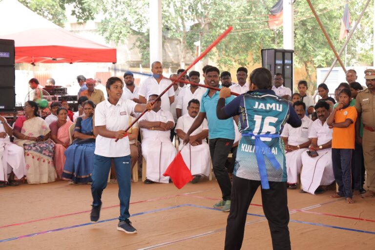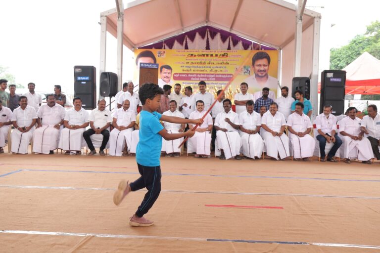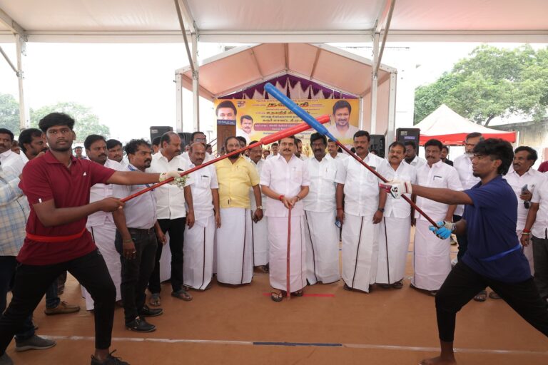 With the blessings of Hon’ble Chief Minister and party president Thalapathy Thiru M.K. Stalin, a grand series of sports competitions is being organised in Karur district from today till December 28, celebrating the 49th birthday of Hon’ble Deputy Chief Minister and youth leader Thiru Udhayanidhi Stalin, who is set to shape the State’s future. Competitions including kabaddi, silambam, chess, handball, badminton, football, cycling race, skating, marathon and cricket will be held with a total prize money of ₹49 lakh. At the Karur Thiruvalluvar Ground, where hundreds of women participated, the women’s silambam tournament—with prize money of ₹7,20,000 and championship trophies—was inaugurated.