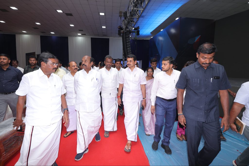 Under the esteemed leadership of our Party President and Hon’ble Chief Minister of Tamil Nadu, Thalapathy M.K. Stalin, I today conducted a thorough inspection of the venue for the upcoming World Startup Movement Conference, which is scheduled to commence tomorrow at the Coimbatore Codissia Hall. The inspection was carried out alongside the Hon’ble Minister for Public Works, Thiru E.V. Velu, and the Hon’ble Minister for Micro, Small, and Medium Enterprises, Thiru T.M. Anbarasan, to ensure that all arrangements, facilities, and protocols are meticulously in place for this prestigious event that aims to bring together entrepreneurs, innovators, and business leaders from across the state and beyond.