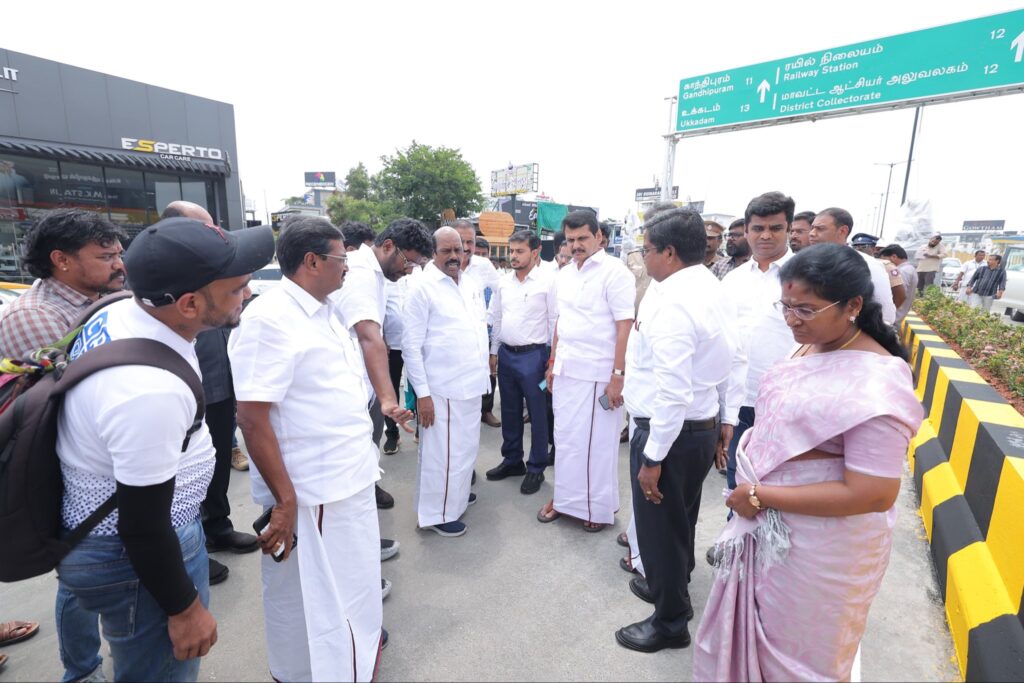 Tomorrow in Coimbatore, the ₹1,791.23 crore, 10.1-kilometer-long Avinashi Road G.T. Naidu High-Level Bridge will be inaugurated by our Party President and Hon’ble Chief Minister of Tamil Nadu, Thalapathy M.K. Stalin. In preparation for this historic event, I, along with the Hon’ble Minister for Public Works, Thiru E.V. Velu, conducted an inspection of the newly constructed bridge. The review was attended by District Collector Thiru Bhavankumar I.A.S., Coimbatore Mayor Thirumathi Ranganayaki, as well as senior government officials and staff, reflecting the government’s commitment to world-class infrastructure and public service.