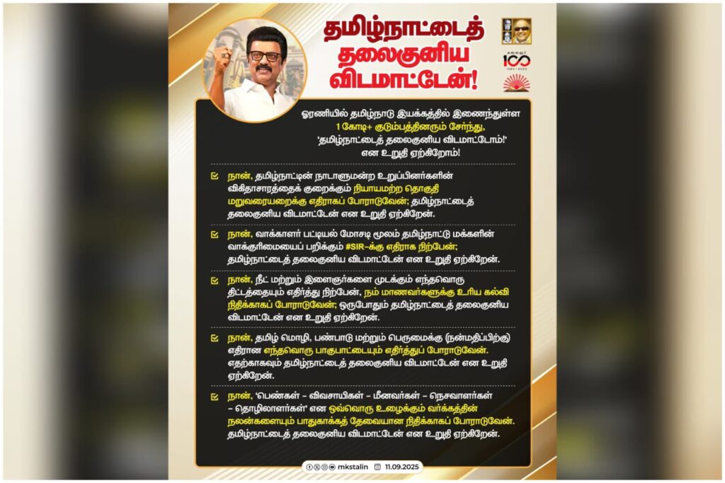 On the occasion of the birth anniversary of C. N. Annadurai, as directed by our Hon’ble Chief Minister of Tamil Nadu and Party President Thalapathy M. K. Stalin, I joined the voters of Rameswarapatti in the Karur Assembly Constituency today to take the pledge that we will never let Tamil Nadu bow its head.