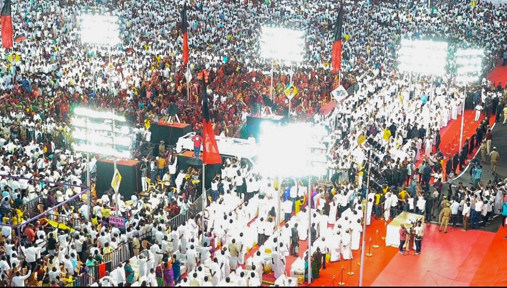 With the gracious blessings of the Hon’ble Chief Minister of Tamil Nadu, Thalapathy M. K. Stalin, and under the guidance of the Hon’ble Deputy Chief Minister and “Leader of Hope” Udhayanidhi Stalin, the grand venue at Kodangipatti in Karur stands fully prepared today to host the prestigious Dravida Munnetra Kazhagam (DMK) Policy Festival — the historic Mupperum Vizha.