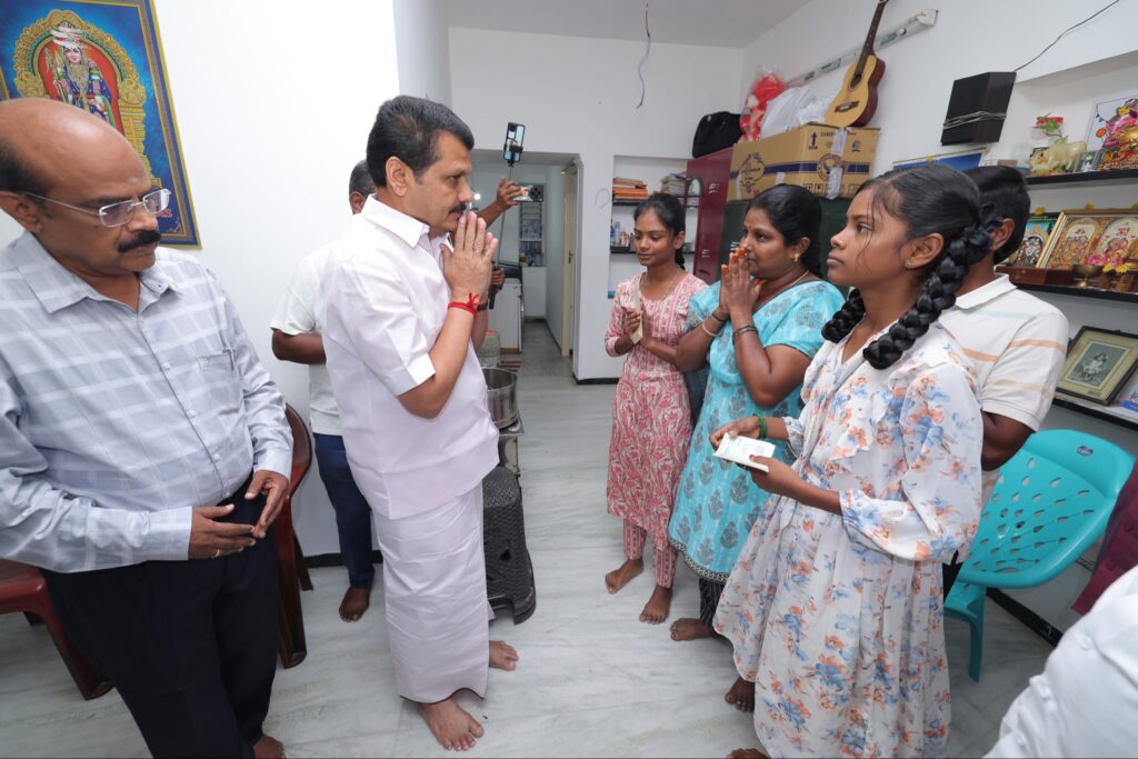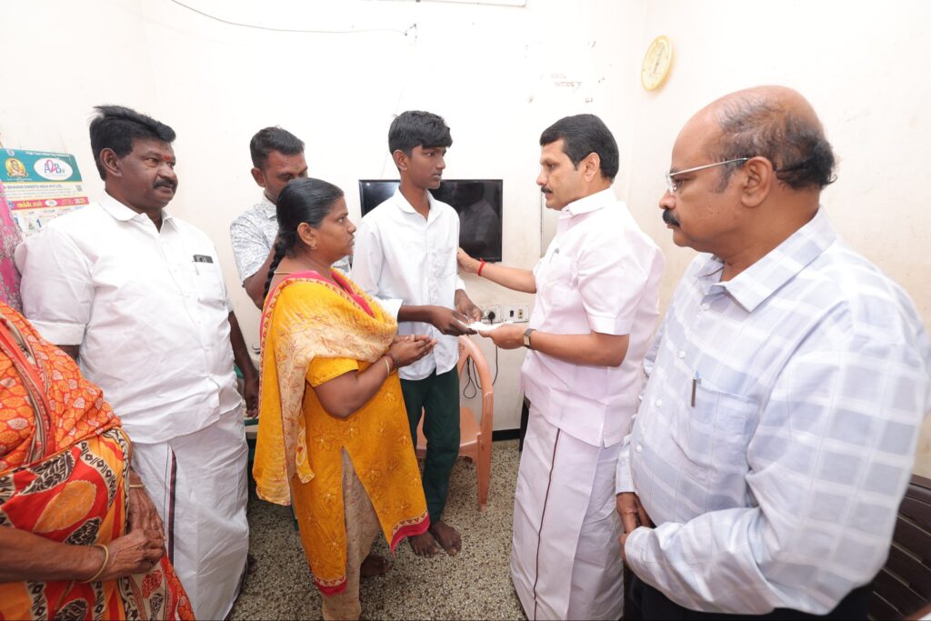 Today, I had the solemn duty of personally meeting and consoling the families of those who tragically lost their lives in the unexpected crowd incident that took place in Karur last Saturday. The grief and pain witnessed were deeply moving, and I conveyed my heartfelt condolences on behalf of the Government of Tamil Nadu. As directed by the Hon’ble Chief Minister of Tamil Nadu, Thalapathy M.K. Stalin, a relief assistance of ₹10 lakh each was provided to the bereaved families from the Chief Minister’s Public Relief Fund. This gesture stands as a reflection of our government’s empathy, responsibility, and steadfast commitment to stand beside the people in their most difficult hours, ensuring that no family faces such loss alone.
