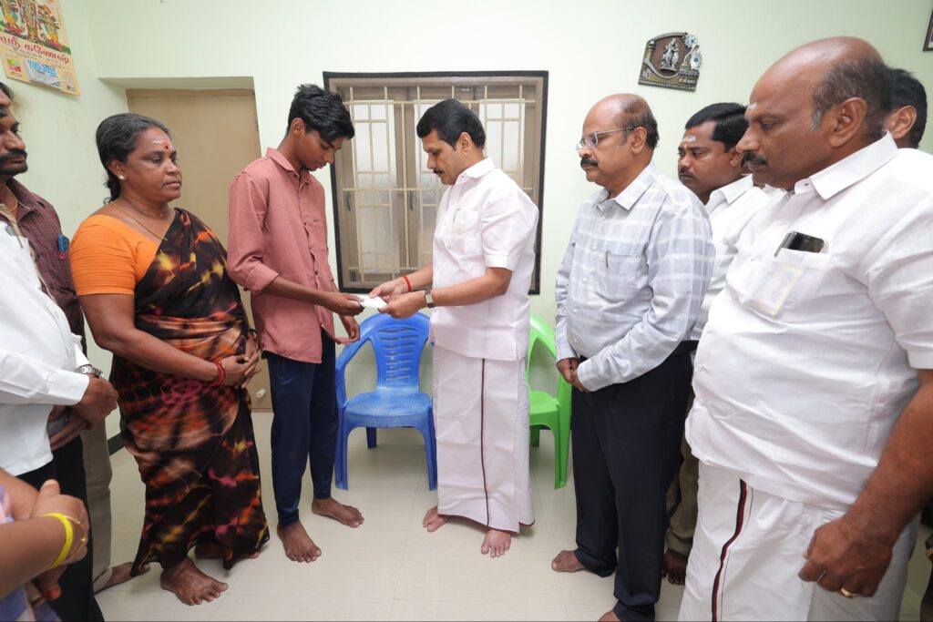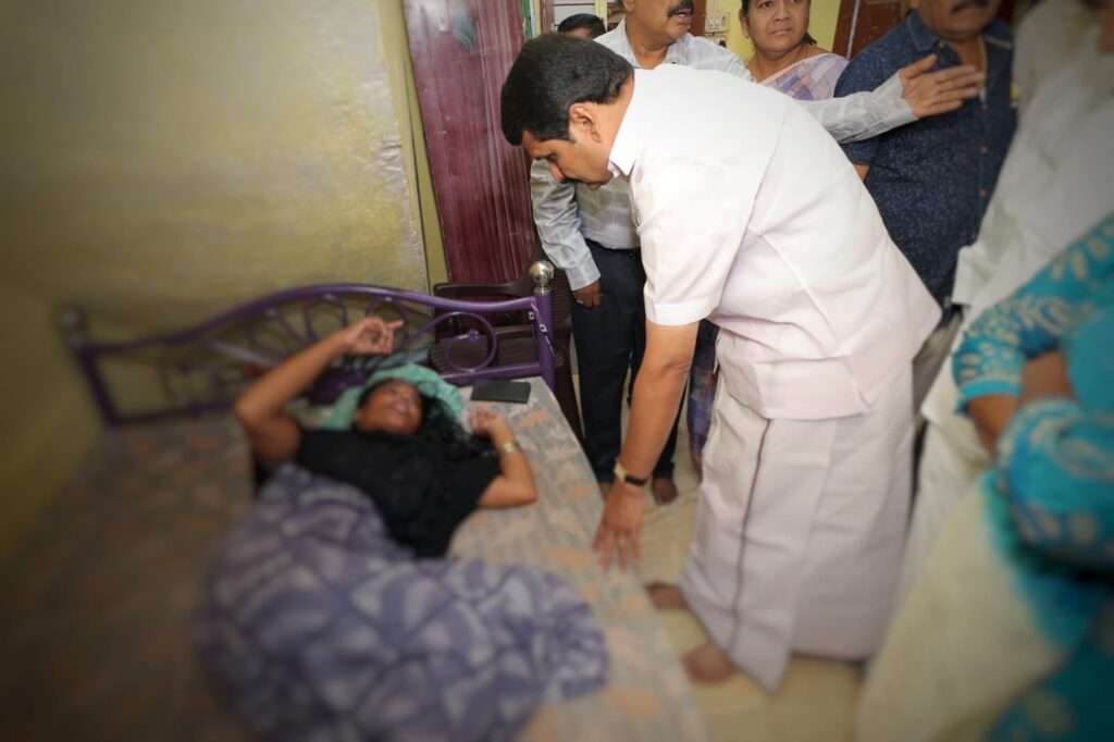 Today, I personally met and checked on the well-being of those injured in the unexpected crowd incident that occurred in Karur on the 27th of last month. Under the direction of the Hon’ble Chief Minister of Tamil Nadu, Thalapathy M.K. Stalin, relief assistance was provided to the injured from the Chief Minister’s Public Relief Fund, demonstrating the government’s commitment to supporting and standing by those affected during this unfortunate incident.